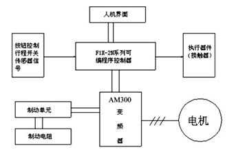 系統(tǒng)組成由人機(jī)界面,PLC,安邦信AMB300系列變頻器,制動(dòng)單元,制動(dòng)電阻。在整個(gè)系統(tǒng)中PLC和變頻器,觸摸屏均通過(guò) RS-485 進(jìn)行串行通訊。